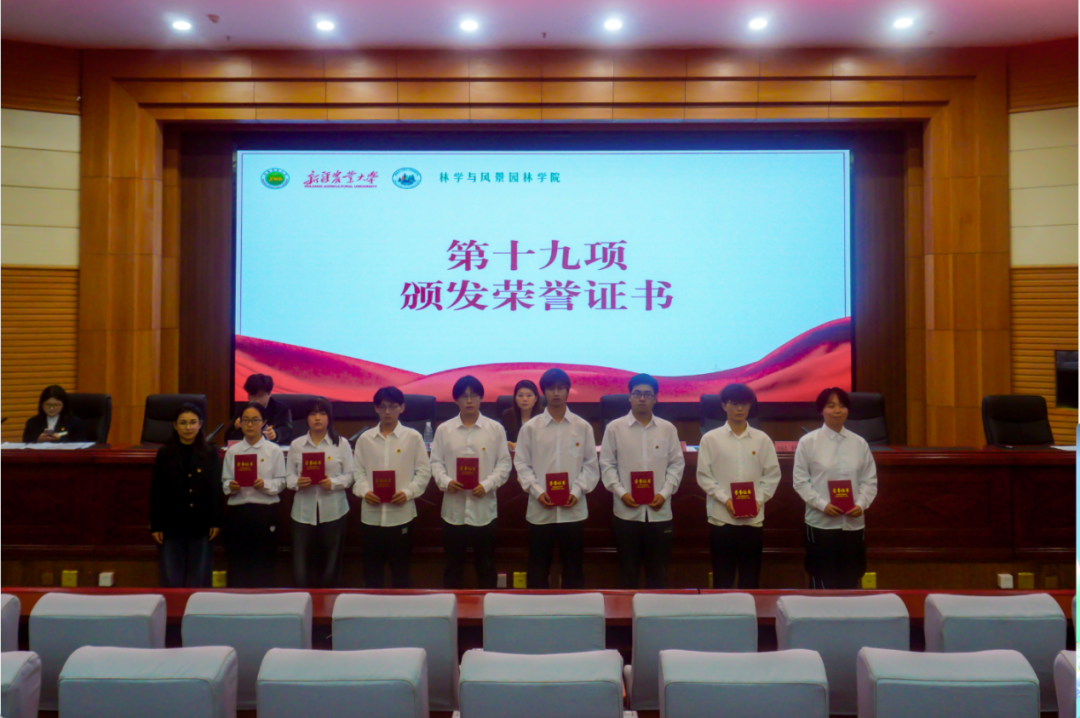 辅导员陈国祥为第四届团委、学生会优秀学生干部颁发荣誉证书