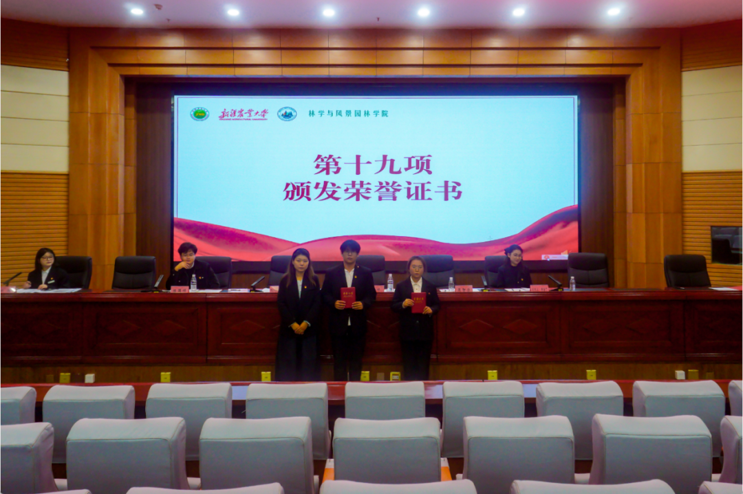 教学科研办副主任于婷为第四届团委、学生会优秀部门、创新部门颁发荣誉证书