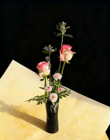 在专业教师的悉心指导和“交友”教师的鼓励下,同学们深入研习中式插花的构图法则与意境表达,从选材、修剪到造型,每一步都凝聚着匠心与思考。每一件作品不仅是艺术的呈现,更是情感的书写,成为“三进两联一交友”活动中师生互动、情感交融的生动缩影。