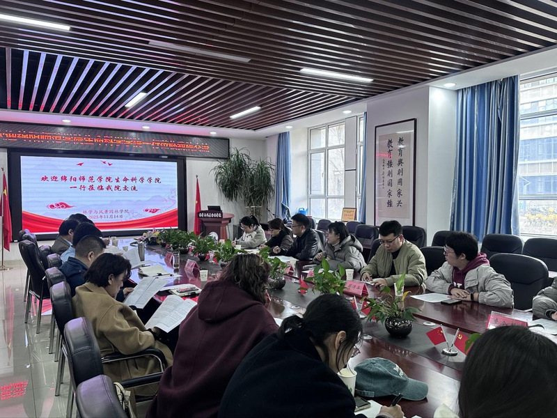 近日,绵阳师范学院生命科学学院(生态林业学院)副院长韩周林一行来访我院,围绕专业建设与人才培养开展深入交流。我院副院长曹云锋、党委委员、园林系主任朱军、智慧林业专业负责人黄铁成,以及林学、园林、智慧林业专业教师代表共20余人参加了座谈。会议由朱军主持并致欢迎辞。