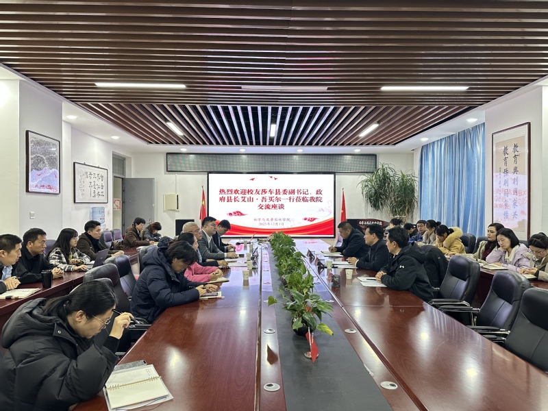 双方一致同意,将以此次座谈为起点,逐步构建常态化、制度化的校地合作长效机制,推动科研项目与地方需求精准对接,确保科研成果在莎车县落地生根、开花结果。座谈会后,艾山·吾买尔一行在学院领导陪同下参观了学院林业有害生物认知实验室、林木种质资源保护与良种选育实验室等实验场地及教学科研设施,对学院扎实的科研基础与丰富的教学资源给予高度评价。