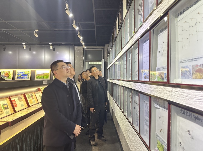 与会人员全面了解我院的发展历程、学科优势、师资力量、人才培养成果,以及在林学、森林保护等领域的科研创新与社会服务成效。期间,大家一起参观了学院昆虫标本室、植物标本室。观看各类珍贵的昆虫与植物标本,专业教师介绍了关于标本采集、整理、保存及在教学科研应用等方面情况,深入了解学院依托标本资源开展实践教学、科学研究、科普教育的工作成果,切身感受学院在林学与森林保护学科实践教学中的扎实基础和创新成效。